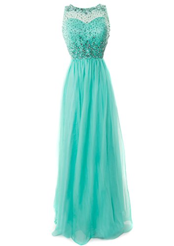 Fiesta Formals Long Chiffon Evening Gown with Gems on an Illusion Neckline - Mint - SASIN : B00LVF0120