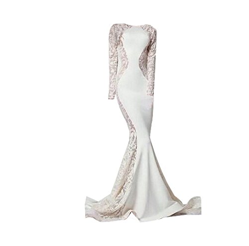 Women Sexy Lace Splicing Long Sleeve Prom Ball Cocktail Party Long Dress Formal Gown White M