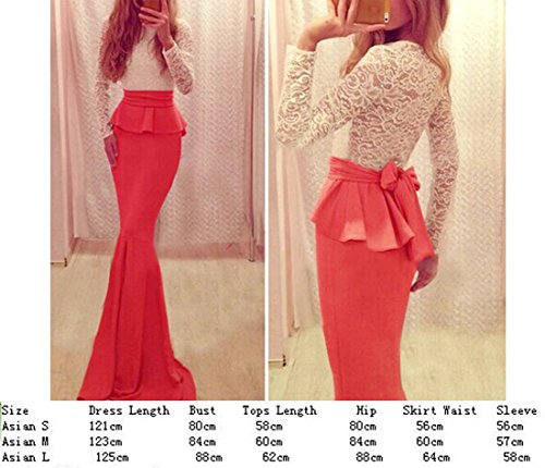 Vakind® Sexy Women Lace Prom Formal Dress Ball Gown Cocktail Evening Party (S, Pink+White)