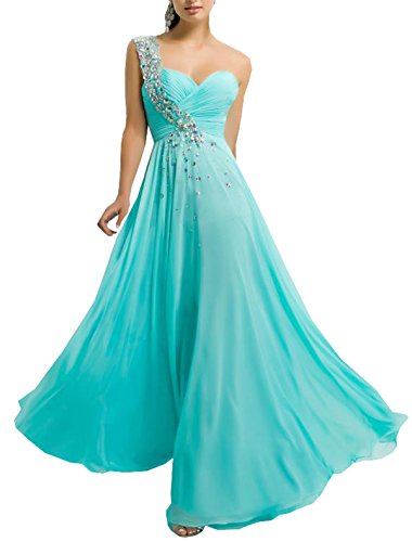 Harshori a Line One Shoulder Long Chiffon Prom Dress with Crystals 2 TurquoiseASIN : B00SOAB80E